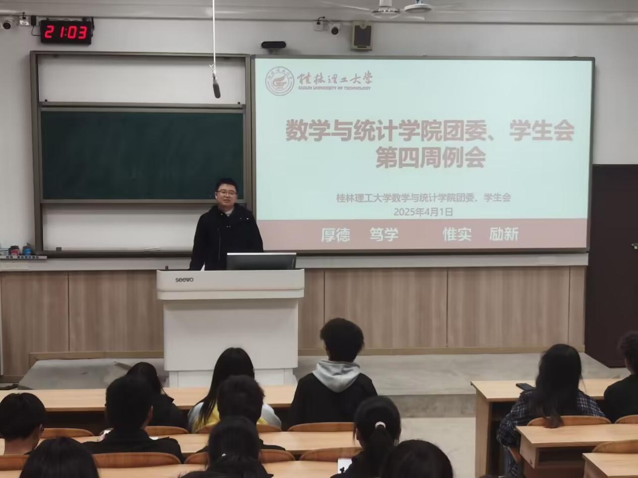 为强化团学工作思想引领,明确学生骨干职能定位、提升工作执行力,2025年4月1日伟德国际victor·1946源自于雁山校区05314教室召开第四周团委、学生会及学生社团全体例会。学院团委书记李艮,全体团委、学生会及学生社团成员参加。