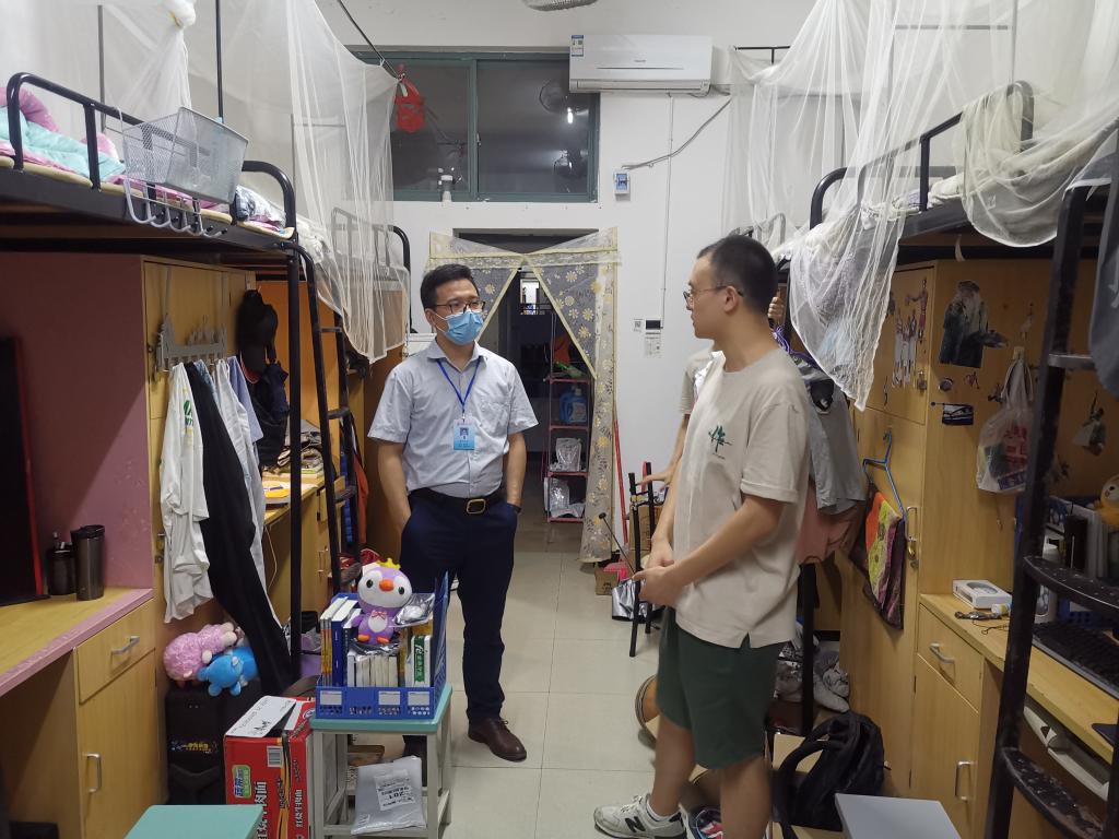 学院党委书记欧阳胜权在学生公寓与学生交谈