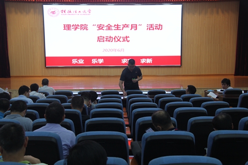 今年是第19个全国“安全生产月”,为认真贯彻落实习近平总书记“从根本上消除事故隐患,有效遏制重特大事故发生”的重要指示精神,认真组织开展好2020年“安全生产月”和“安全生产万里行”活动。理学院于6月2日下午在雁山校区图书馆报告厅举行“安全生产月”活动启动仪式,学院党委书记欧阳胜权,党委副书记、院长肖剑荣,党委副书记钟立军以及其他在家院领导出席活动现场,全体教职工到场参加。