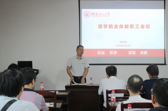 2020年9月1日下午,学院在雁山校区召开学院全体教职工大会,会议由肖剑荣院长主持。