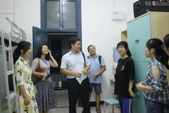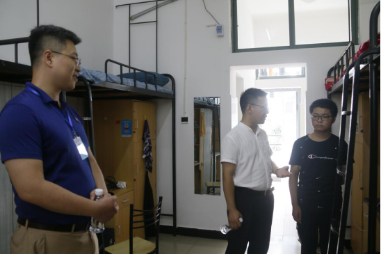 学院领导、新生班主任和新生辅导员在新生报到刚刚结束后就深入走访了新生宿舍。“家住哪里”,“有没有不适应的地方”等唠家常式问题让新生倍感亲切,交流氛围十分和谐。随后,学院领导、老师们重点强调了安全问题,提醒新生保管好个人重要信息和贵重物品,提高警惕,勿轻信他人,有问题及时跟老师联系与反映。此外,在交流过程中还谈到了宿舍关系、专业学习、大学规划、学生活动等问题,并且还仔细查看了宿舍内各项设施的配备情况,确保新生有序、顺利、安全入住。