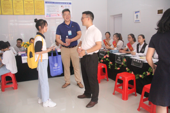院党委书记欧阳胜权、副书记钟立军来到迎新现场了解新生注册报到情况,并亲切地慰问了在各自岗位认真工作的志愿者们,对其辛勤付出给予了充分的肯定和感谢;同时,也对他们提出了要求和希望,嘱托其加强意识形态管理,希望志愿者们在迎新工作中鼓足干劲,坚守阵地,确保每一位新生都能及时、顺利地报到,圆满完成新生入学报到工作。在迎新现场,学院领导也与部分新生进行了亲切地交流。