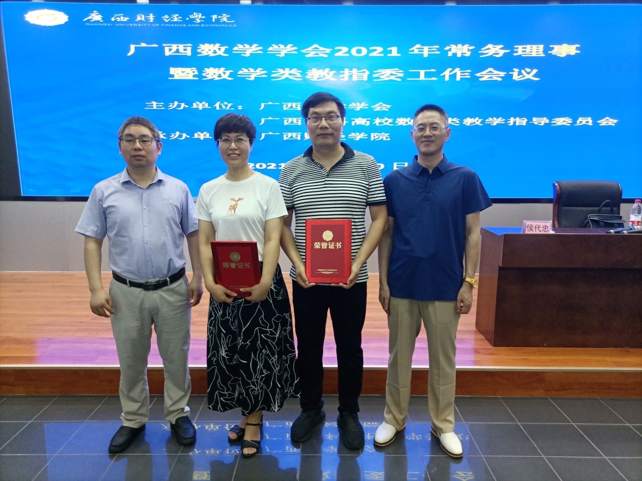 2021年6月19日,首届全区高校大学数学课程教学创新比赛的最后一个环节“现场答辩”在南宁圆满举办。此次比赛中,我院教师范金梅、曾翔、冯凤香组成的《线性代数》课程代表队与李婷婷、刘淑芹、郭又铭、李兴龙组成的《高等数学》代表队均获得一等奖的好成绩。范金梅老师与李婷婷老师录制的课堂教学视频,以及两位老师的现场答辩均获得评委的一致好评。在此,对我院老师取得的好成绩表示热烈祝贺!