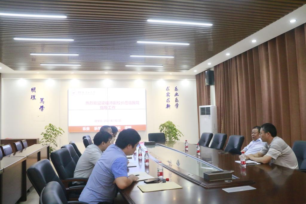 7月2日下午,学校党委常委、副校长梁福沛在教务处相关负责人陪同下到理学院调研指导工作,并与理学院领导班子成员进行座谈交流。