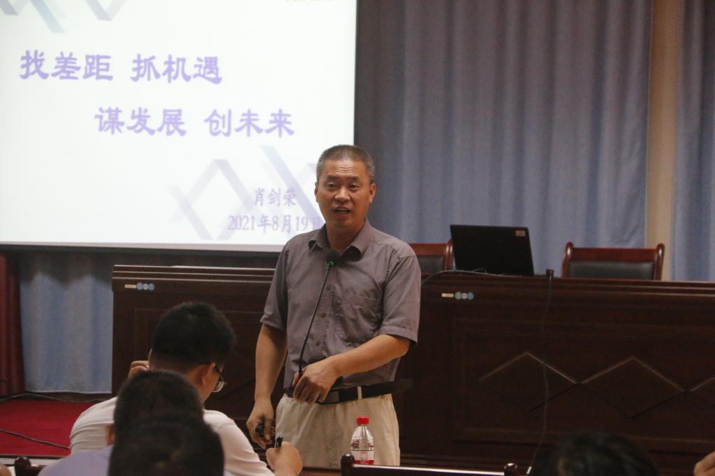 肖剑荣院长首先传达了学校2021年战略研讨会精神,就学校现状及“十四五”发展目标进行了详细阐述。随后,以《找差距、抓机遇、谋发展、创未来》为题,从学院“十三五”取得的成绩,“十四五”面临的机遇和挑战、今后学院的发展方向、工作目标、思路和举措等方面与全体教职工进行了分析。