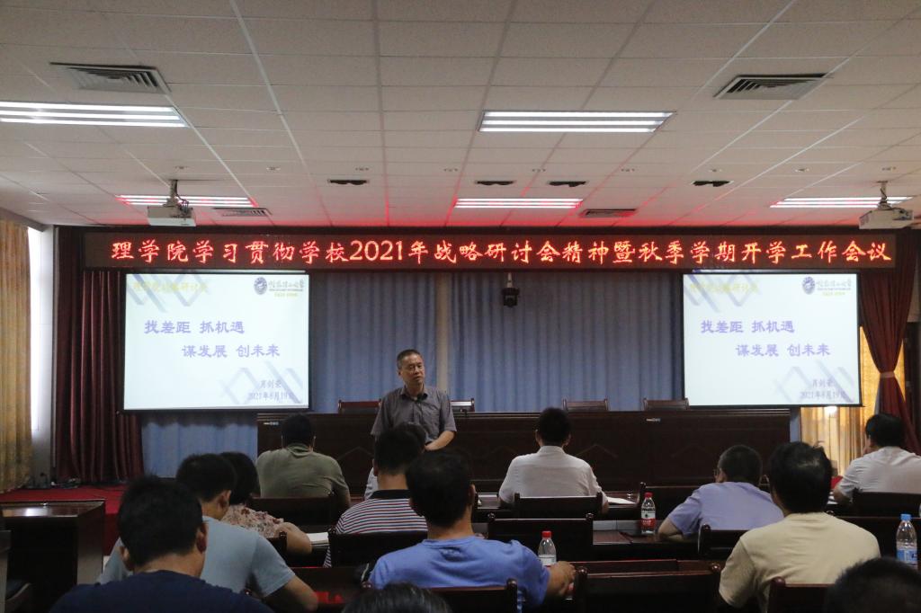 2021年8月31日,学院在雁山校区A406会议室,召开学习贯彻学校2021年战略研讨会精神暨2021年秋季学期开学工作会议。学院领导班子全体成员及全体教职工参加会议。会议由党委书记欧阳胜权主持。