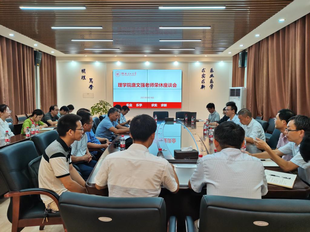 在第37个教师节来临之际,为进一步增强学院广大教师的使命感、荣誉感和归属感,弘扬尊师重教的良好风尚,把对老师们的关心关爱做到实处,9月10日上午,学院在雁山校区8201会议室召开了2021年教师节座谈会暨唐文强老师荣休座谈会,学院领导班子成员、退休教师唐文强、各教研室主任、2021年国家基金的获得者、新进教师及其他部分教师代表参加了座谈会,座谈会由学院党委书记欧阳胜权主持。