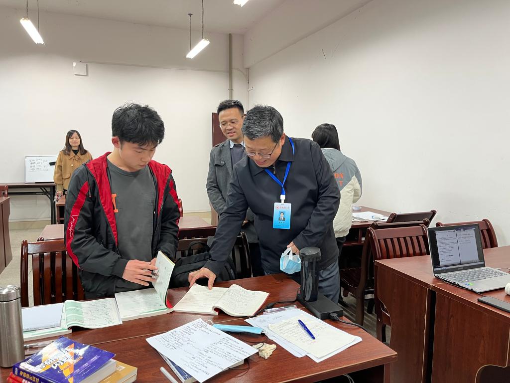 为做好疫情防控常态化下考研远程网络复试准备工作,确保学生顺利参加网络复试,3月29日下午,学校党委副书记吴志强到学院实地检查指导考研远程网络复试准备工作,学工部(处)部(处)长冯广辉、副部(处)长孙巍陪同检查。