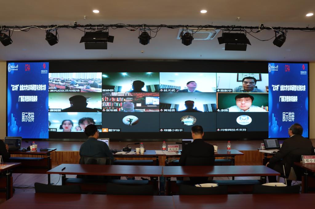 本届大赛共有来包括广西大学、广西师范大学、桂林电子科技大学、广西民族大学、广西财经学院、伟德国际1946等省内20余所院校共计3879名学生报名参加市场调查及统计学相关知识竞赛环节的网考,组建了近700个调研团队进入市场调查实践赛环节。通过各学校校级选拔后,有840名学生共183支队伍晋级广西区赛,专家在线上通讯评审后,选拔出12支队伍其共57名同学参加了今天举行的“广西12进5”总决赛。