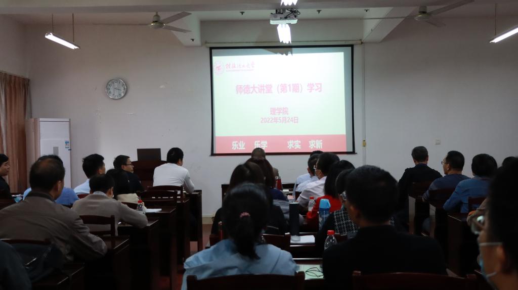 为响应学校党委教师工作部《关于组织开展学校“师德大讲堂”2022年(第1期)活动的通知》精神,我院于2022年5月24日下午在雁山校区07122会议室组织全院教职工开展了“师德大讲堂”2022年(第1期)学习教育活动。