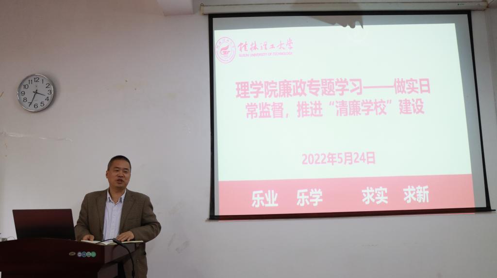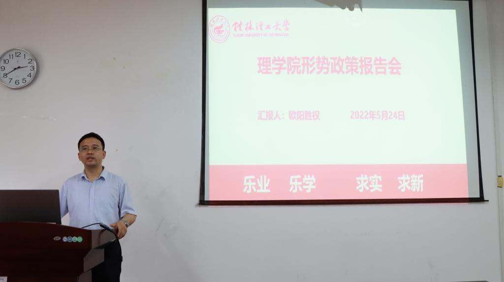 2022年5月24日下午,学院在雁山校区07122会议室召开了全体教职工会议。学院领导班子全体成员和全体教职工参加了会议。会议由党委书记欧阳胜权主持。