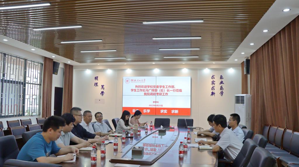 6月22日,学校党委学生工作部、学生工作处冯广辉部(处)长一行莅临我院调研考研工作,学院院长肖剑荣、党委副书记钟立军、副院长张富文、副院长李明在08201会议室接待了冯广辉部(处)长一行,会议由学院院长肖剑荣主持,全体辅导员参加会议。