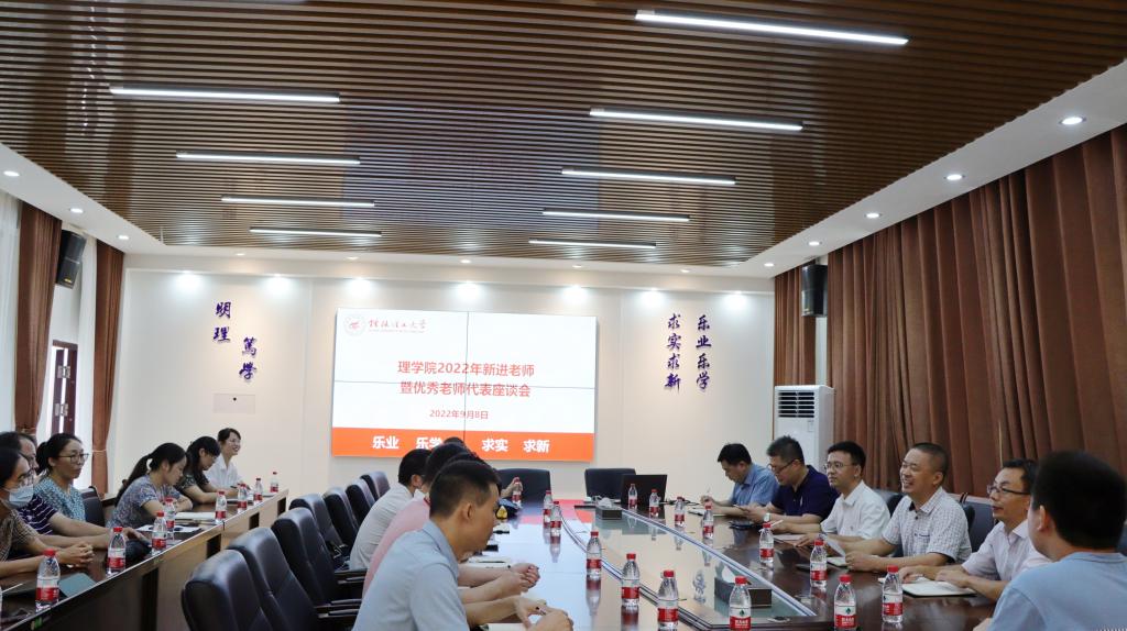 9月8日上午,在第38个教师节来临之际,为迎接党的二十大,引导广大教师深刻领悟“两个确立”的决定性意义,进一步增强“四个意识”、坚定“四个自信”、做到“两个维护”,理学院在08201会议室召开2022年新进教师暨优秀教师代表座谈会。学院党政领导班子全体成员、各教研室负责人、各科室负责人、优秀教师代表以及新进教师参加座谈会。座谈会由学院党委副书记钟立军主持。