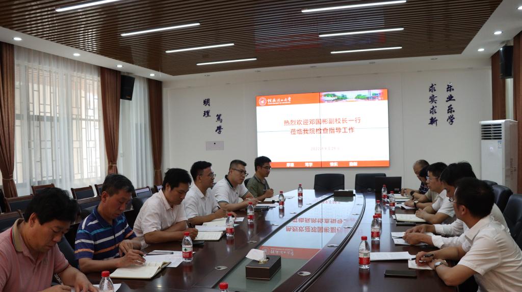 2022年9月29日下午,学校党委常委、副校长邓国彬率武装部部长、保卫处处长张瑞,党委统战部副部长董译升,党办(校办)副主任黄敬秀及党委组织部相关人员一行莅临我院检查指导工作,学院领导班子、院长助理、办公室主任、专职组织员参加了座谈会。会上,学院党委书记欧阳胜权首先把学院“三重一大”、组织建设、意识形态、统战、校园安全等方面的工作进行了汇报。