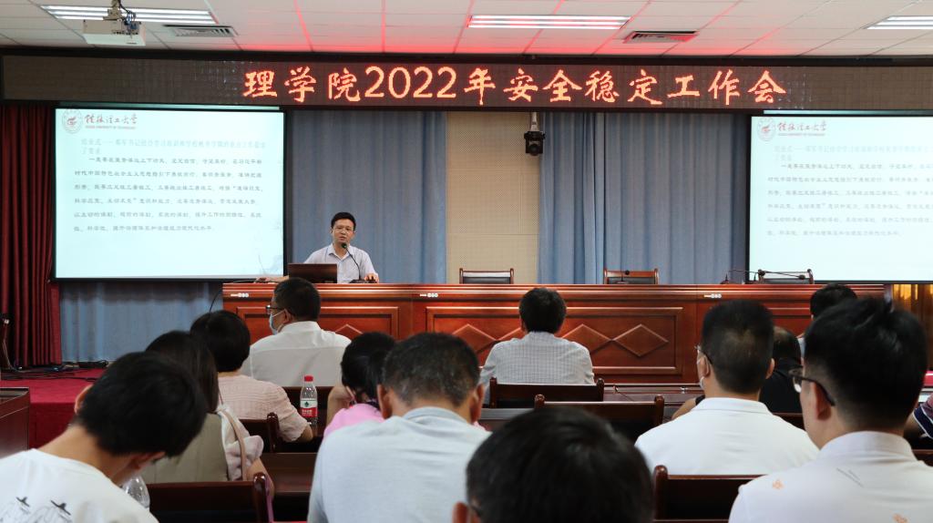 会上,蒋远营副院长首先传达了学校在9月19日上午召开的2022年消防安全工作会以及安全稳定专题工作会议精神。接着,通过播放历年在一些高校发生的重大安全事故的视频和近期发生的电信诈骗案例来警醒大家不要对安全工作有丝毫松懈。最后欧阳胜权书记强调:当前我们面临的有关安全稳定工作比以往更为艰巨的局面,在党的二十大召开前后相当长一段时间内,安全稳定工作的重要性将更加凸出,我们要充分认识安全稳定在学院建设发展中的重要作用,为党的二十大的胜利召开营造平安和谐的校园环境贡献我们的一份力量。