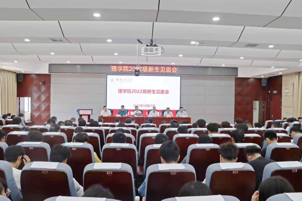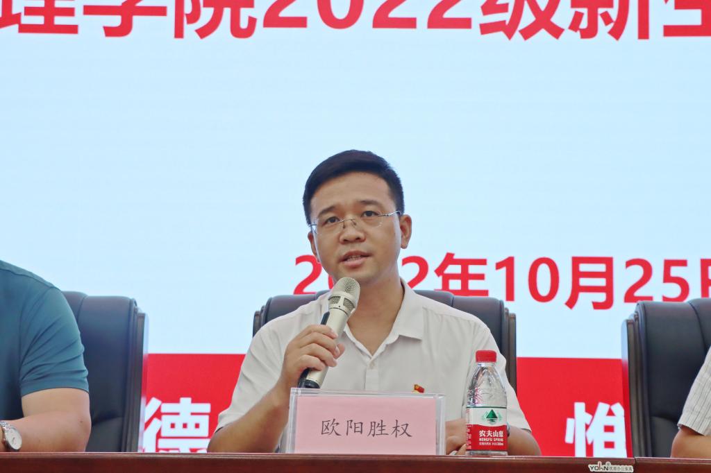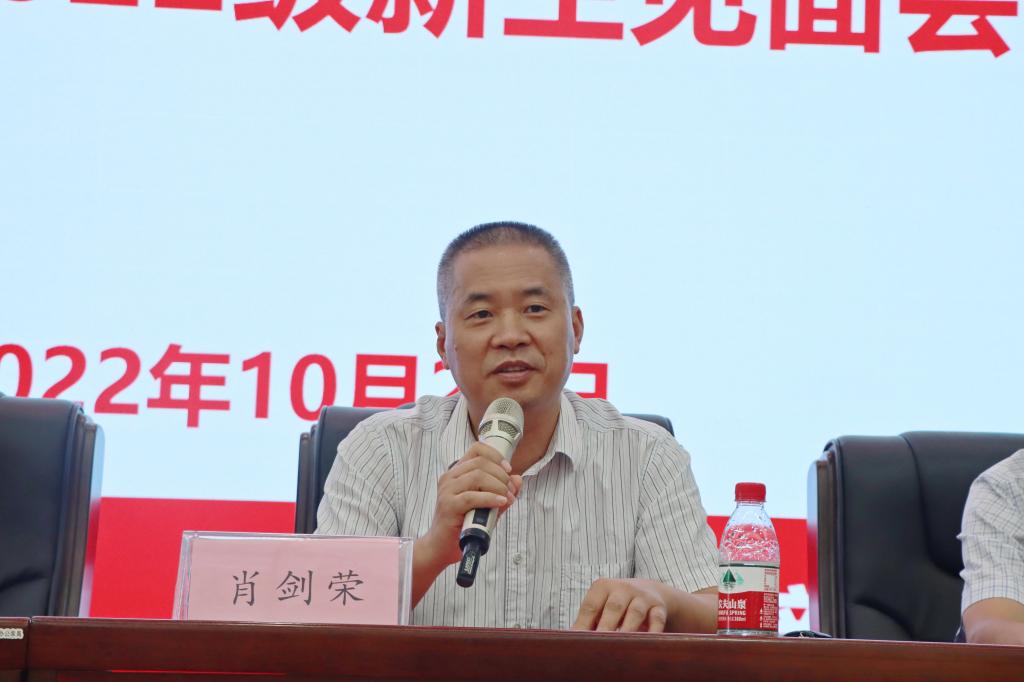 为进一步提高2022级新生对学院的归属感与对专业的认知度,引导新生尽快完成角色身份的转换,2022年10月25日中午,理学院于雁山校区01501报告厅和06408教室同时举行2022级新生见面会。学院党委书记欧阳胜权、院长肖剑荣及学院全体党政领导班子、各专业教研室主任、新生班主任和全体辅导员出席会议,2022级本科生和研究生参加会议。见面会由学院党委副书记钟立军主持。