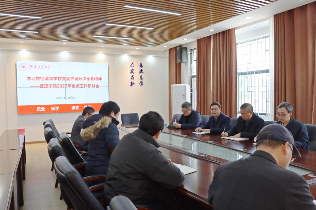 2月20日下午,学院在雁山校区08201会议室召开学习贯彻落实学校党委三届五次全会精神暨2023年重点工作研讨会,学院党政领导班子成员参加了会议,会议由欧阳胜权书记主持。