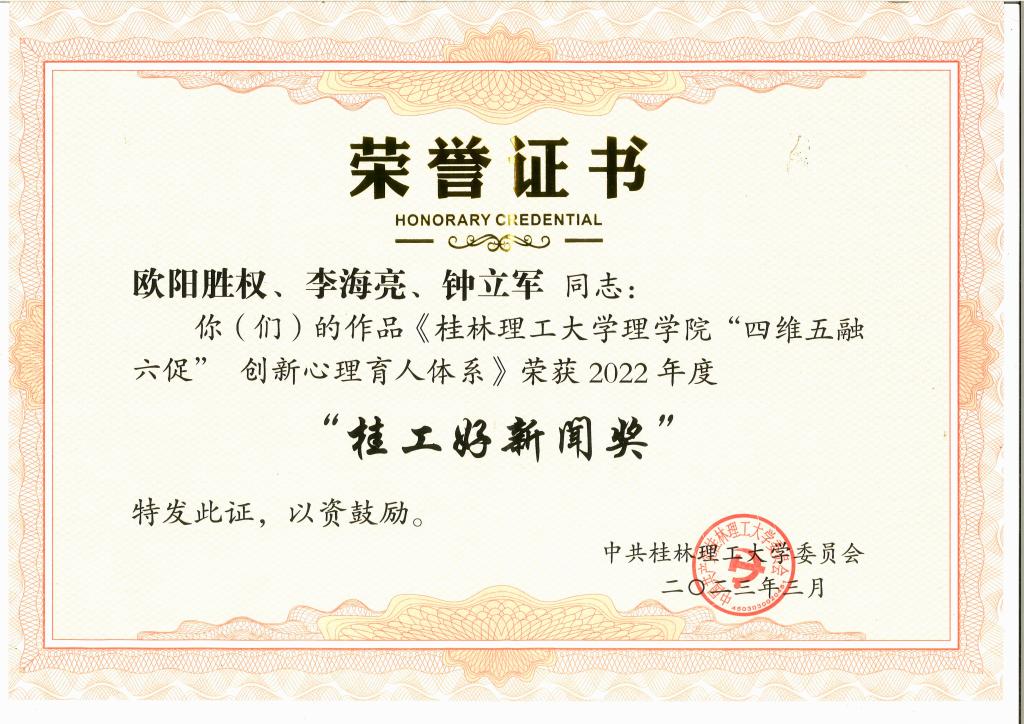 《伟德国际1946理学院“四维五融六促” 创新心理育人体系》荣获“桂工好新闻奖”