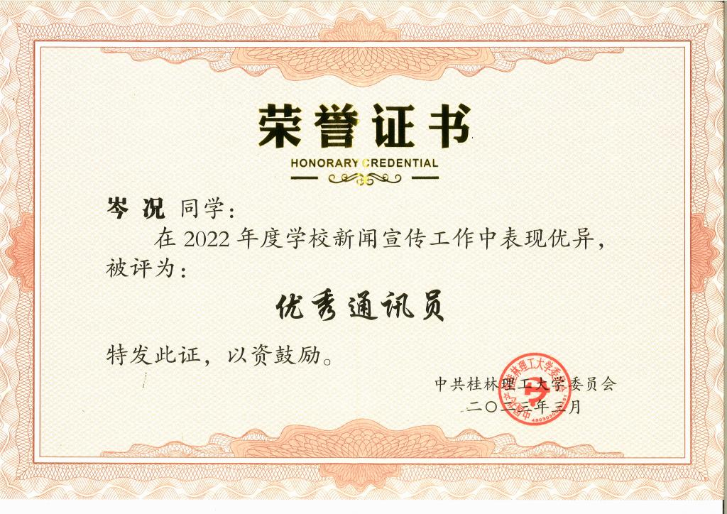 信科2021-1班岑况荣获“优秀通讯员”