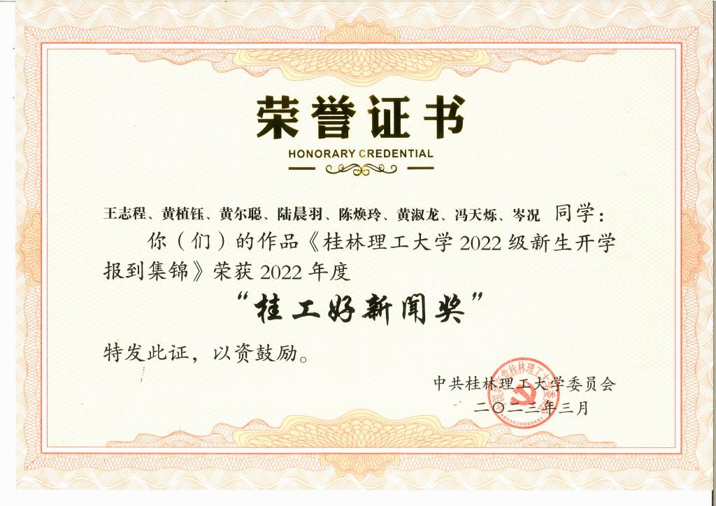 《伟德国际19462022级新生开学报到集锦》荣获“桂工好新闻奖”