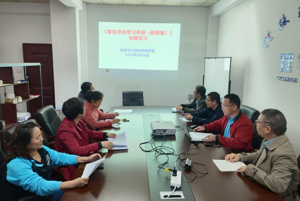 为了进一步推进新一轮本科教育教学审核评估迎评工作,信息与计算科学教研室4月28日下午在屏风理学院会议室开展《审核评估学习手册(教师版)》专题学习活动。专题学习活动由教研室主任谢海主持,教研室全体教师参加了专题学习活动。