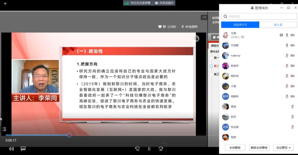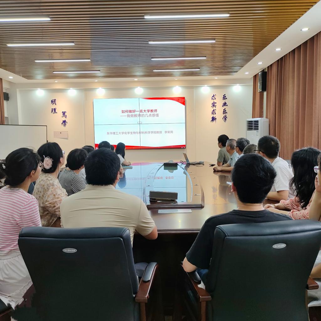 本期学习讲堂是以教研室、办公室等为单位采取线上和线下集体观看视频的方式进行的,主题是:如何做好一名大学教师——我做教师的几点感悟。主讲人结合自身经验、感受,对大学教师的主要职责进行讲解说明,高校老师不仅要做好教师,做好学问,还应该做好服务;然后通过政治性、奉献性、专业性、主动性四个方面对如何做好一名大学老师进行详细介绍。
