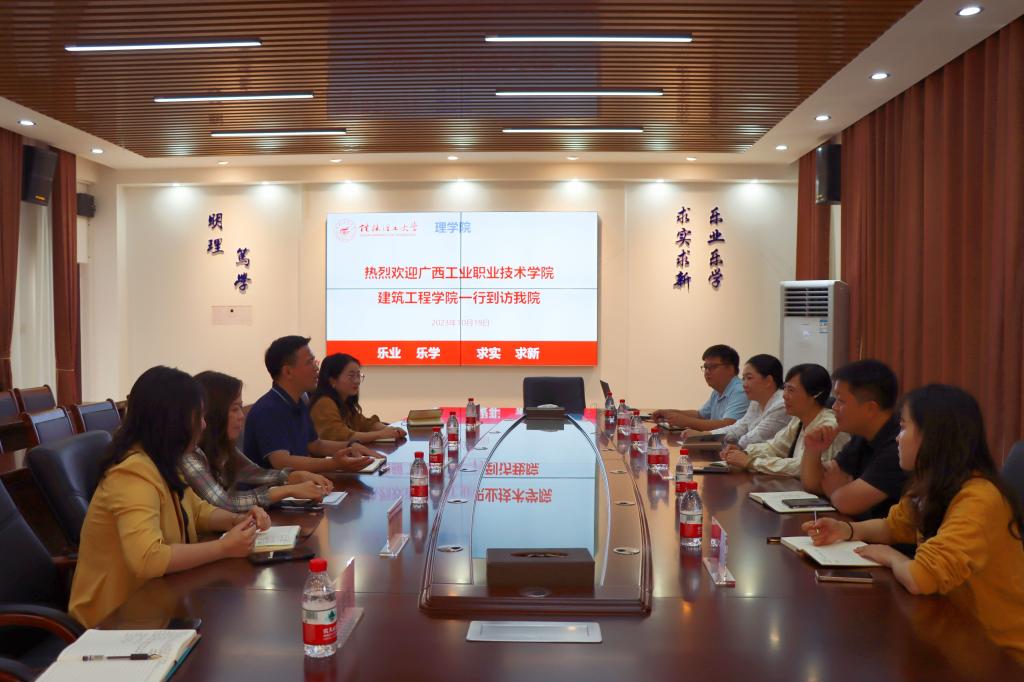 广西工业职业技术学院建筑工程学院党总支书记对我院的热情接待表示感谢并介绍了学校及建筑工程学院的相关情况,希望通过此次交流增进双方的彼此了解,促进双方之间更进一步合作发展。随后,双方就学生管理工作、科技竞赛、心理健康教育工作等方面进行了深入的沟通交流。