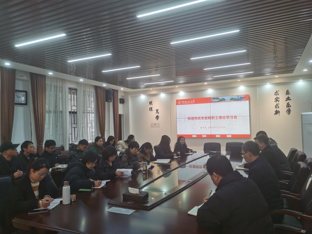 为了进一步加强师德师风教育,全面提升教师职业素养,落实立德树人根本任务,11月13日上午,我院召开教职工理论学习会,开展师德师风专题教育活动,活动由学院党委副书记、院长肖剑荣主持,学院领导班子成员、教研室、实验室、党政办公室、学工团委办公室等有关人员参加了本次活动。