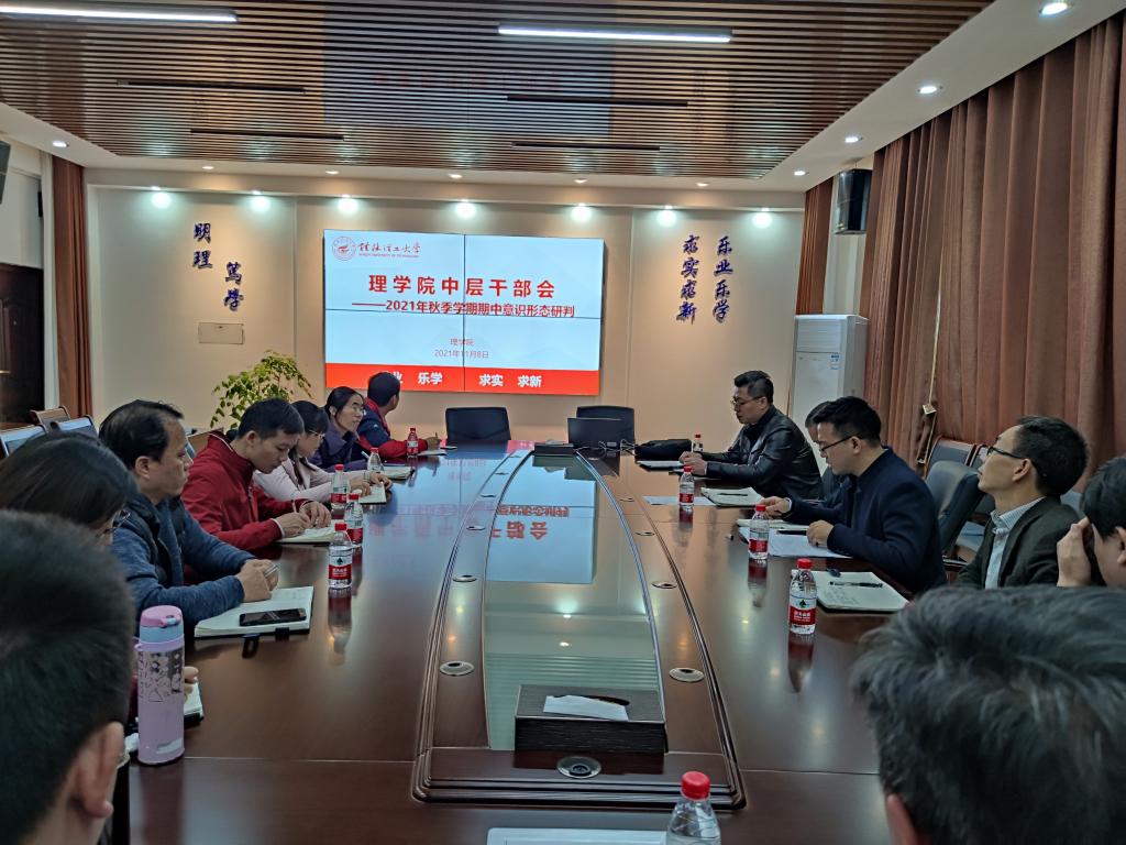 11月8日下午,我院在雁山校区08201召开2021年秋季学期期中意识形态工作研判专题会议,全面研究分析当前意识形态工作情况并对下一步工作进行了安排和部署,会议由学院党委书记欧阳胜权主持,院长肖剑荣、党委成员、各教研室负责人、各年级辅导员参加会议此次会议。
