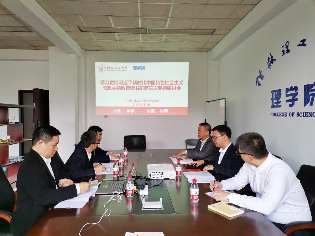5月15日下午,理学院党委领导班子学习贯彻习近平新时代中国特色社会主义思想主题教育读书班第三次专题研讨会在屏风校区1409会议室举行。会议由学院党委书记欧阳胜权主持,院长肖剑荣领学,学院党委领导班子参加会议。