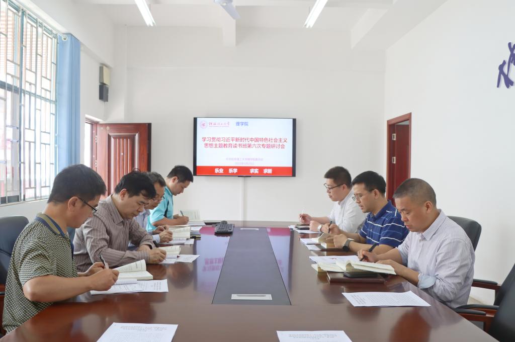 5月25日上午,理学院党委领导班子学习贯彻习近平新时代中国特色社会主义思想主题教育读书班第六次专题研讨会在雁山校区08203会议室举行。会议由学院党委书记欧阳胜权主持并领学,学院党委领导班子参加会议。