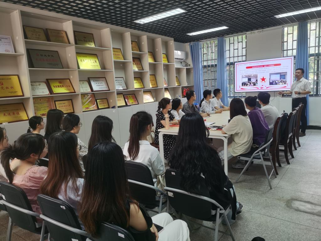 2023年7月4日理学院学生党支部在08204党员活动室开展了“推进教育、科技、人才‘三位一体’协同融合发展”的专题党课。本次活动由理学院党委书记欧阳胜权主讲,理学院专职组织员夏琳主持会议,本科生低年级党员参加了会议。
