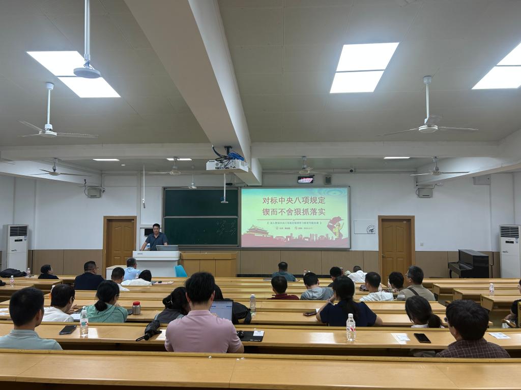 6月17日,伟德国际victor·1946源自在屏风校区09101组织开展“深入贯彻中央八项规定精神学习教育”专题党课。本次党课由学院党委副书记、院长蒋远营主讲,全院教职工到场学习。党课紧密结合高校教育工作实际,引导全体教师党员将中央八项规定精神内化于心、外化于行,以过硬作风投身立德树人事业。