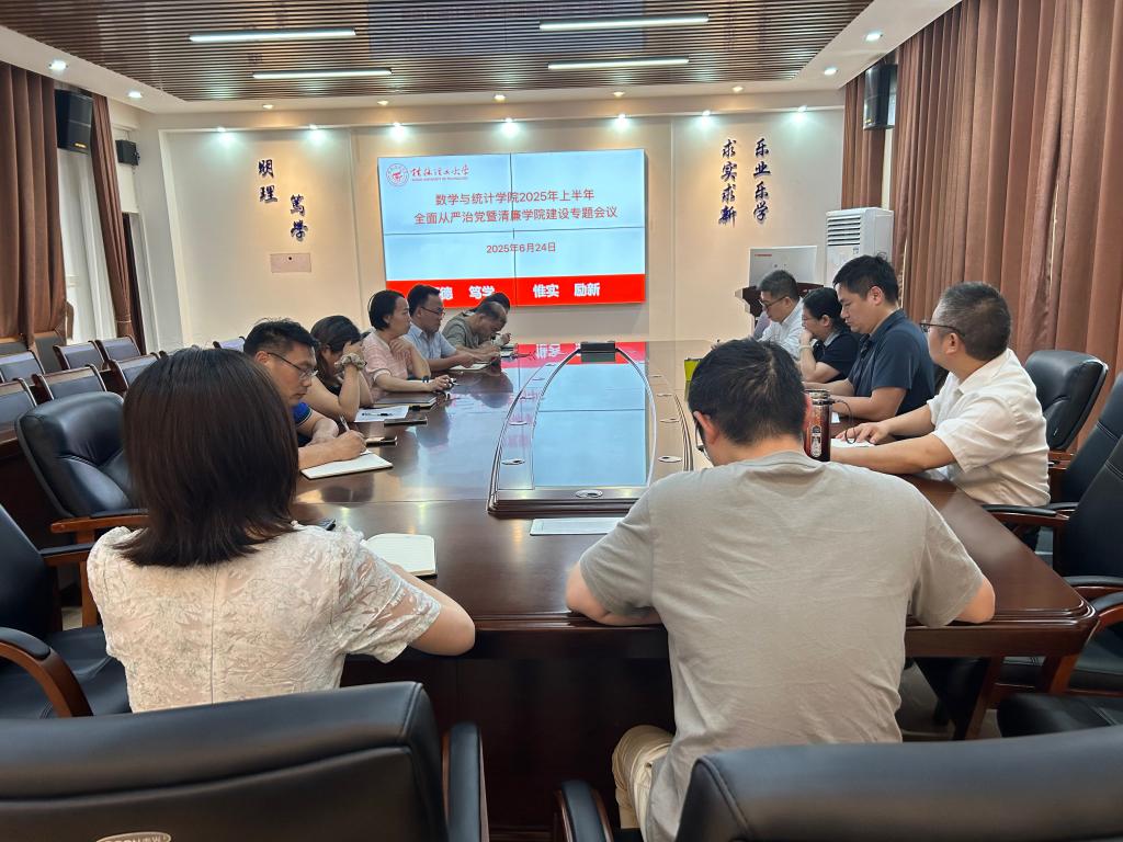 会议强调,要将全面从严治党与教育科研、业务工作深度融合。要筑牢思想防线,把学习贯彻中央八项规定精神学习教育与学院中心工作结合;要厚植清廉文化,打造“数统清风”品牌,将廉洁元素融入数学建模、市调大赛等环节。