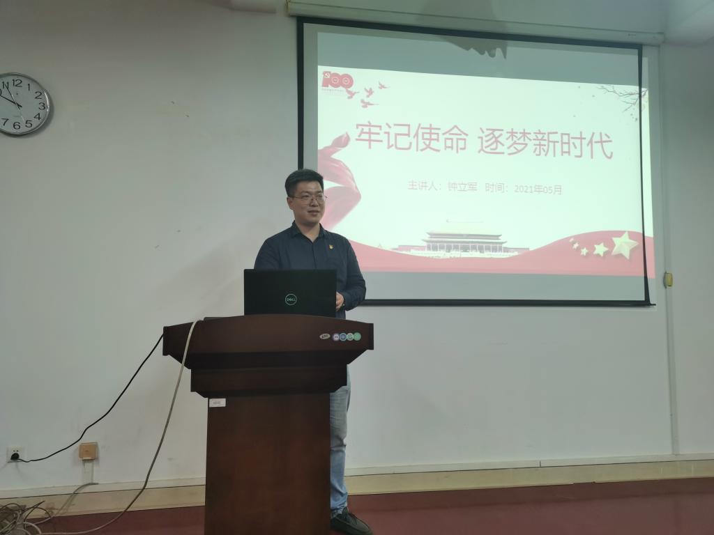 2021年5月18日下午在雁山校区07122教室,我院研究生党支部开展“牢记使命,逐梦新时代”主题党课教育活动。此次党课由支部对接领导、学院党委副书记钟立军主讲,支部全体党员参加。