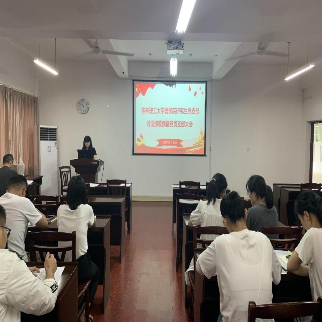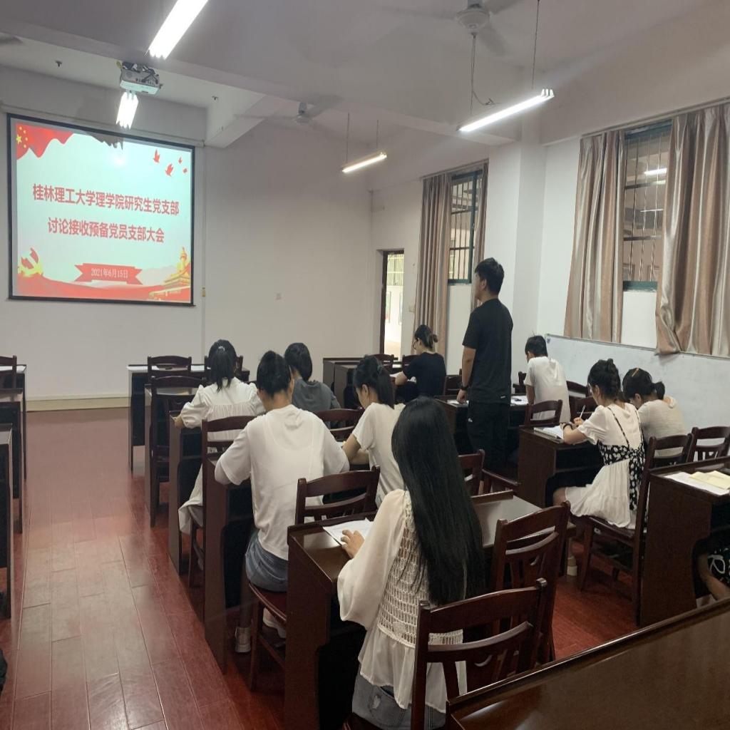 2021年6月15日下午在雁山校区07122教室,我院研究生党支部召开预备党员接收大会,讨论刘云辉等4名发展对象接收为预备党员问题。会议由支部副书记胡蓉主持,支部全体党员参加。
