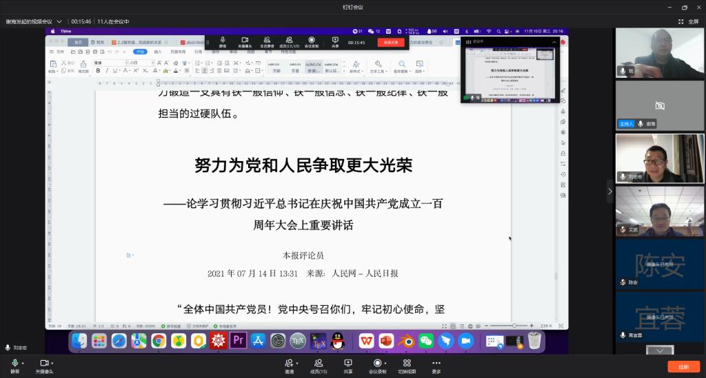 11月10日晚上8点,理学院教工三支部通过钉钉在线会议开展了学习习近平总书记“七一”重要讲话精神主题党日活动。本次活动由支部书记刘志宏主持,支部全部党员参加了该活动。