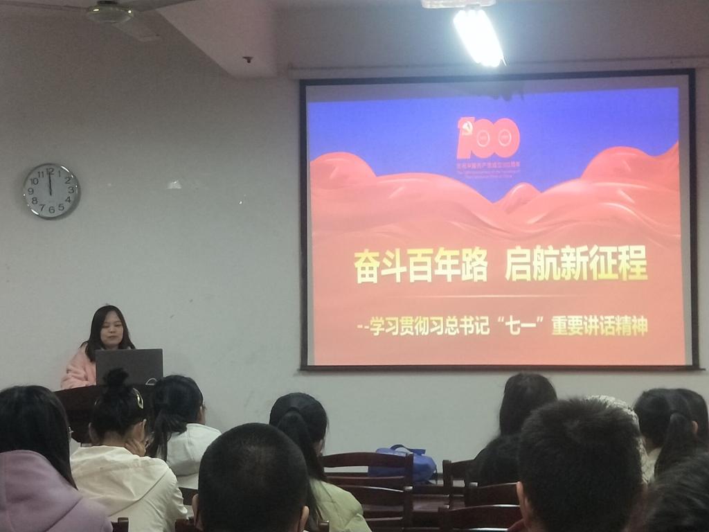 11月30日,理学院本科生第一党支部在07122会议室召开全体党员大会,开展了以“奋斗百年路 启航新征程”的习近平总书记“七一”重要讲话精神党课学习,支部全体党员参加党课学习,支部书记夏晴主讲。