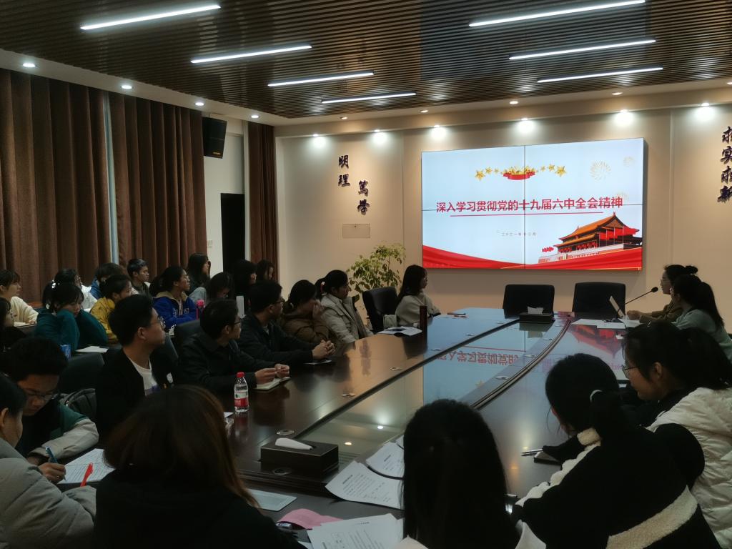 2021年12月14日,理学院本科生第四党支部在08201教室开展了关于学习十九届六中全会精神主题党日活动。本次活动由支部书记彭娇娇老师主持,支部全体党员参会。