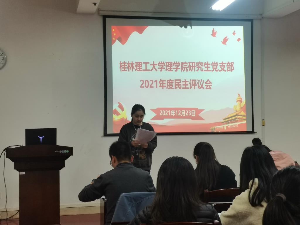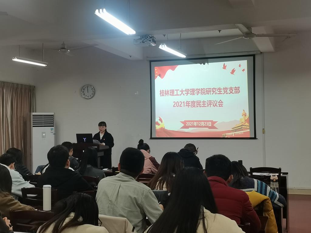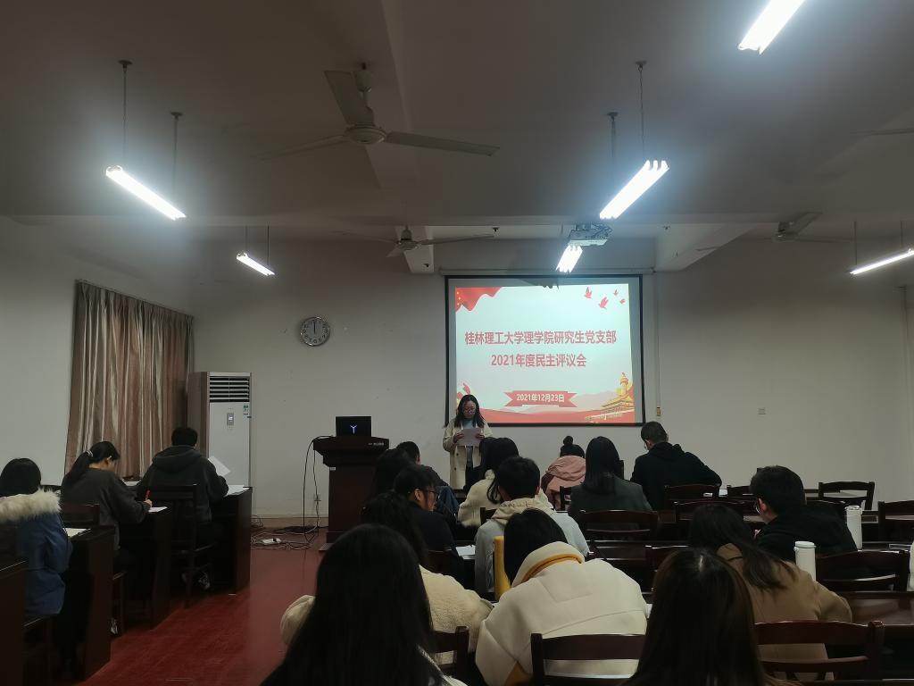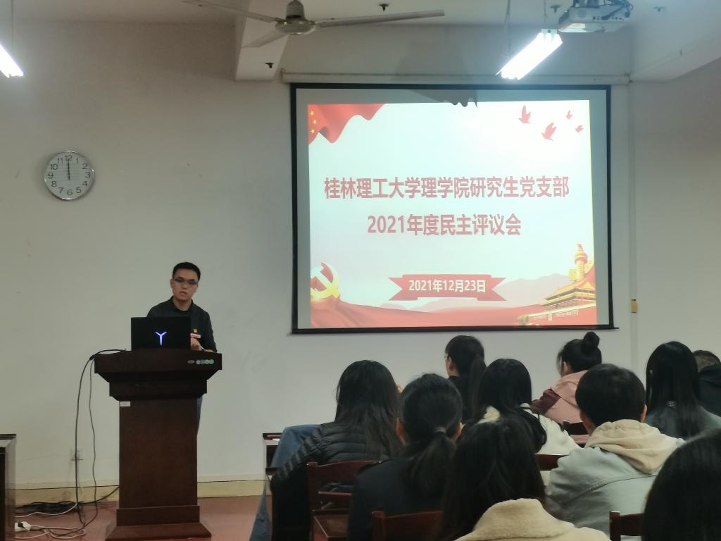 2021年12月23日晚上在雁山校区07122教室,我院研究生党支部召开2021年度党员民主评议会。会议由支部书记周黎钰老师主持,支部全体党员参加。