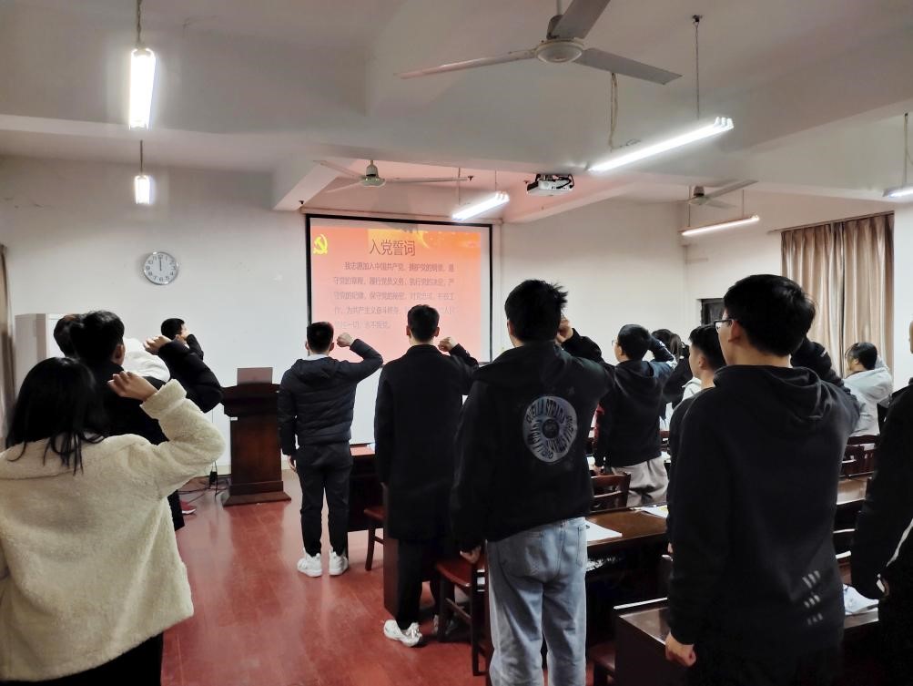 会议尾声,韦长喜老师带领全体同志宣读入党誓词,并对本次大会作出总结,他对本次接收的9名预备党员表示了衷心的祝贺,并希望樊梓良等9名同志珍惜韶华、不负青春,努力学习掌握科学知识,提高内在素质,锤炼过硬本领,时刻牢记党员身份,切实履行党员义务,起到党员应有的先锋模范作用。