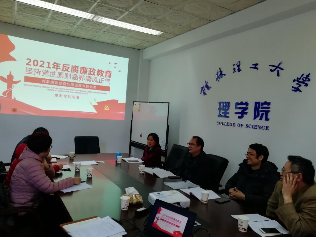 12月21日下午2:30,理学院教工三支部在屏风校区1409开展了“党风廉政教育反腐倡廉”专题党课。本次党课由支部书记刘志宏主讲,学院党委书记欧阳胜权和支部全体党员出席了该活动。