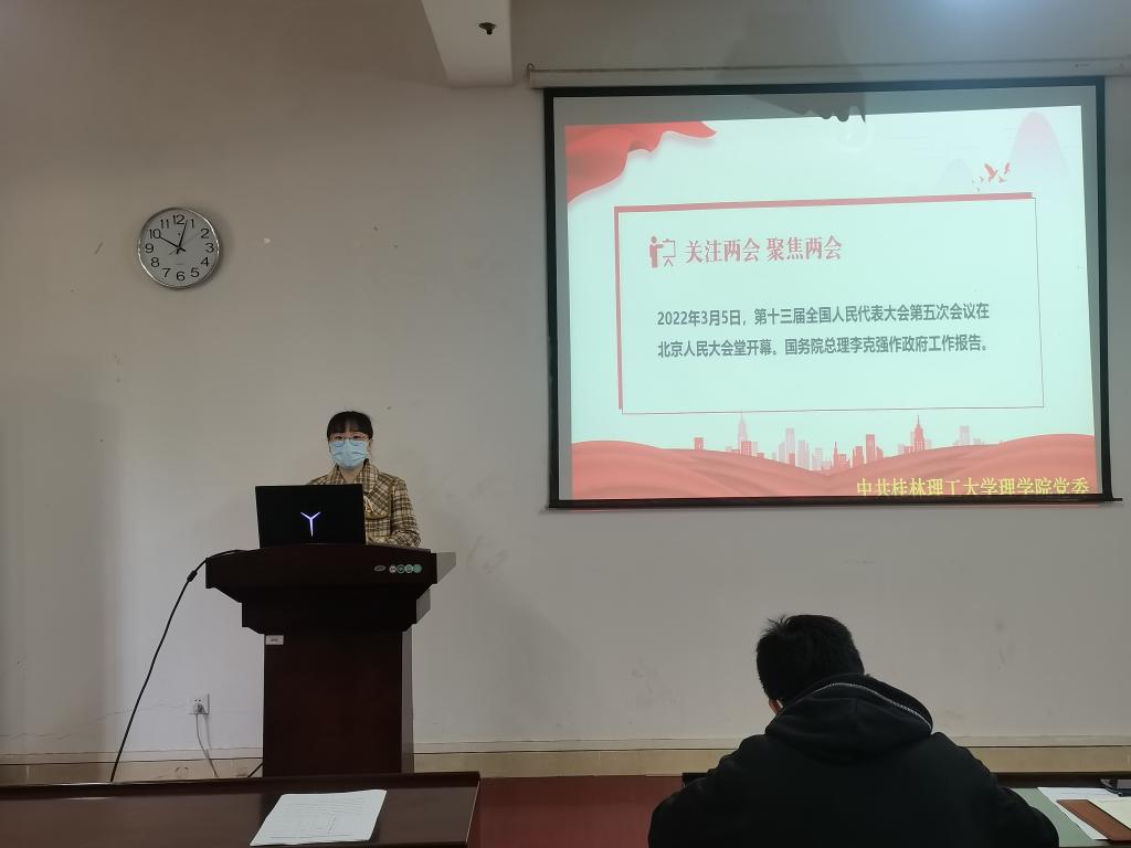 2022年3月28日上午在雁山校区07122教室,学院研究生党支部开展“2022年政府工作报告”专题党课学习活动。此次活动由支部书记周黎钰老师主讲,支部全体党员参加学习。