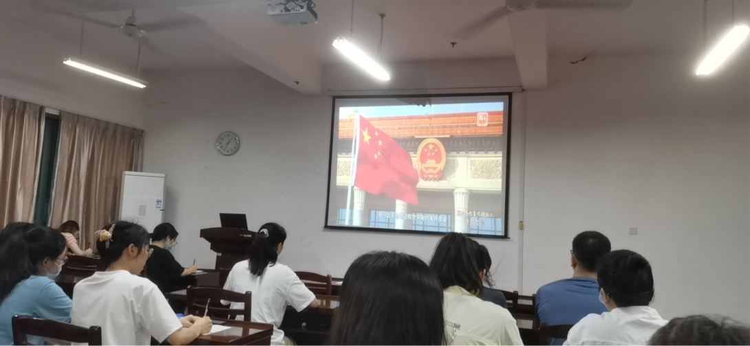 本次主题党日活动分为两个环节,第一全体党员集体观看了《紧跟伟大复兴领航人踔厉笃行》,第二共学《中国共产党简史》。会上,观影完后,支部书记彭娇娇同志结合自己的工作和学习经历,用实例分享党的十八大以来广西的发展成就,并勉励支部党员不忘初心,牢记使命,用实际行动和优异的成绩迎接党的二十大胜利召开;其后,党支部成员展开热烈讨论,分别谈了自己的观后感。随后,支部书记彭娇娇老师介绍了支部理论学习常态化制度,讲述了理论学习的重要性;其后,六位党员同志依次上台分享了自己《中国共产党简史》的学习心得与体会,并鼓励大家积极准备红书分享,一起投入到理论学习中来。