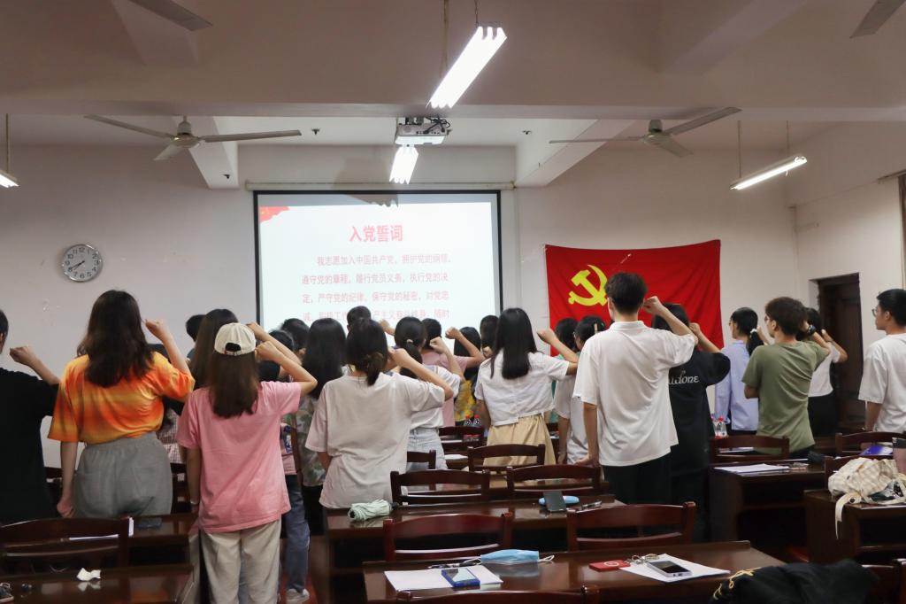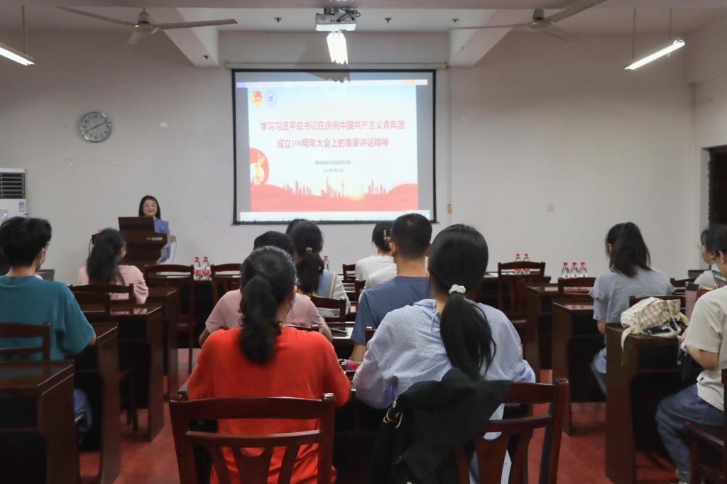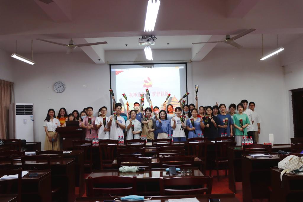 活动伊始,“温誓词、守初心”,毕业生党员代表王纯同志带领全体党员重温入党誓词,铿锵有力的誓词让每位党员再次牢记爱党、忠诚、敬业、奉献的初心。紧接着,由彭娇娇老师带领大家学习习近平总书记在庆祝中国共产主义青年团成立100周年大会上的重要讲话精神并向大家介绍了毕业生党员组织关系转接相关问题。她希望全体党员主动深入领会习近平总书记重要讲话的重大意义和深刻内涵以及深学细悟习近平总书记讲话的丰富内容和实践要求,不断地强学习、担使命。其后,两名毕业生党员白亚龙同志和梁姚同志在“谈体会、踏征程”环节依次上台发表了感言,共同回顾了大学四年里自身经历的矛盾、迷茫与成长,为支部低年级党员分享了在校期间的宝贵经验并送上了最诚挚的祝福,由衷地表达了对老师的感恩之情以及对母校的留恋。