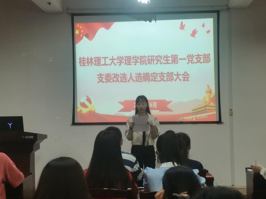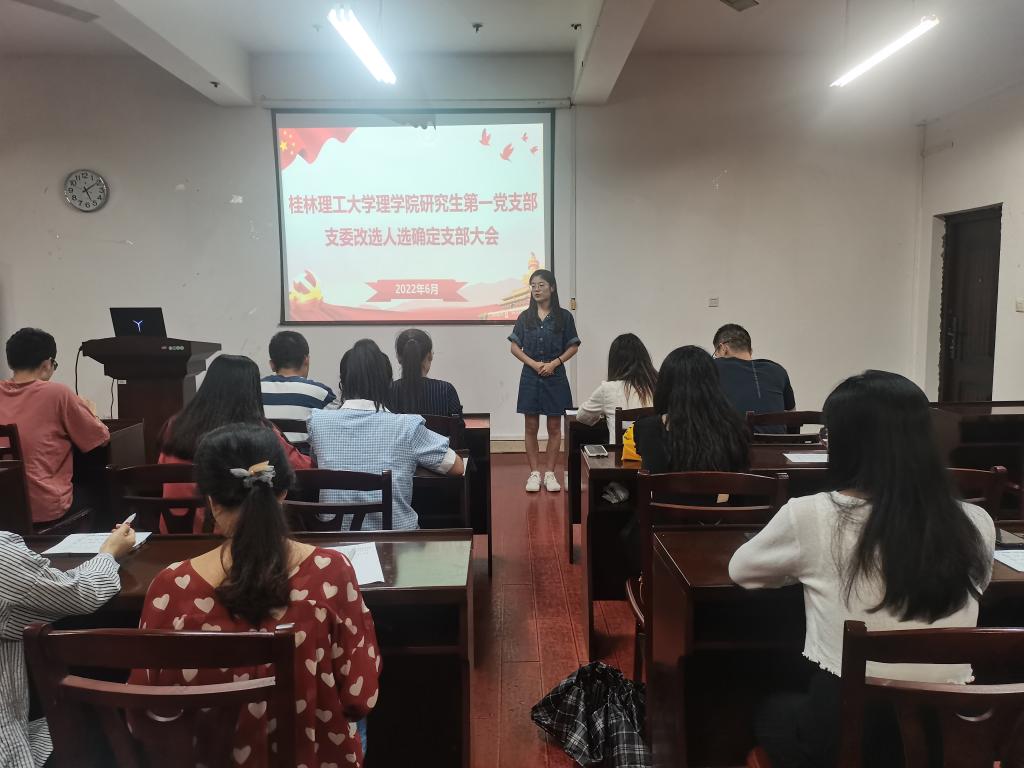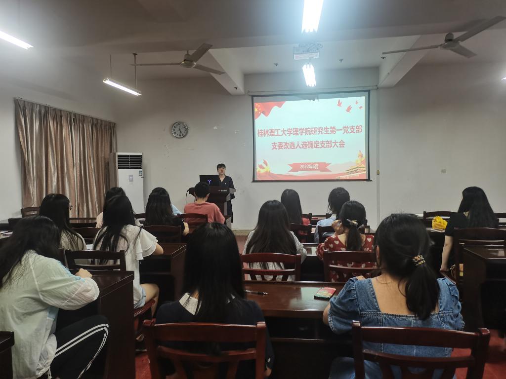 2022年6月16日下午在雁山校区07122教室,我院研究生第一党支部召开支部委员会改选大会。会议由支部副书记薛任袖主持,支部全体在校党员参加。