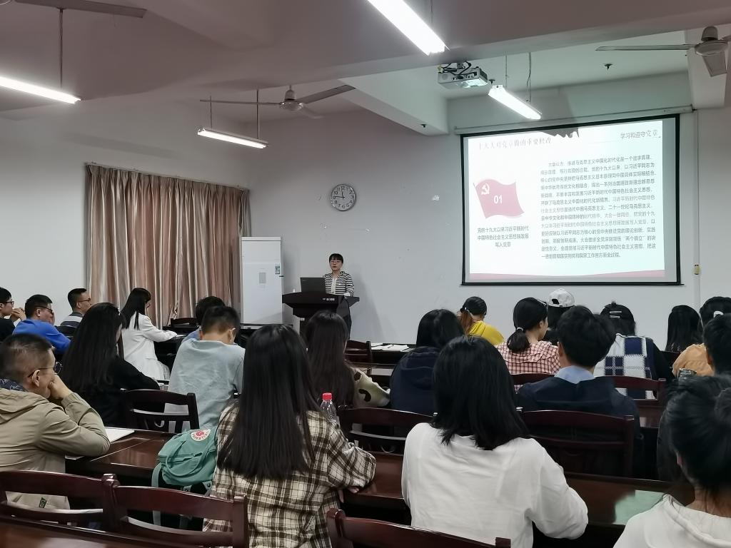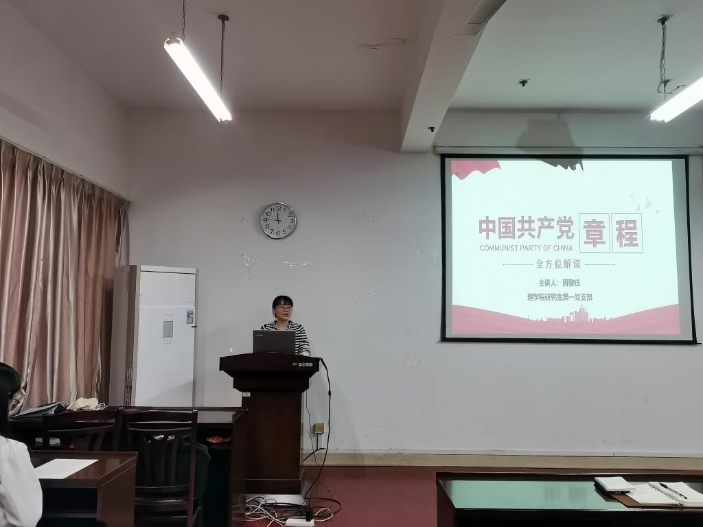 2022年10月31日上午在雁山校区07122教室,我院研究生第一党支部展开“《中国共产党章程》全方位解读”主题党课教育活动。此次活动由支部书记周黎钰老师主讲,支部全体党员参加学习。