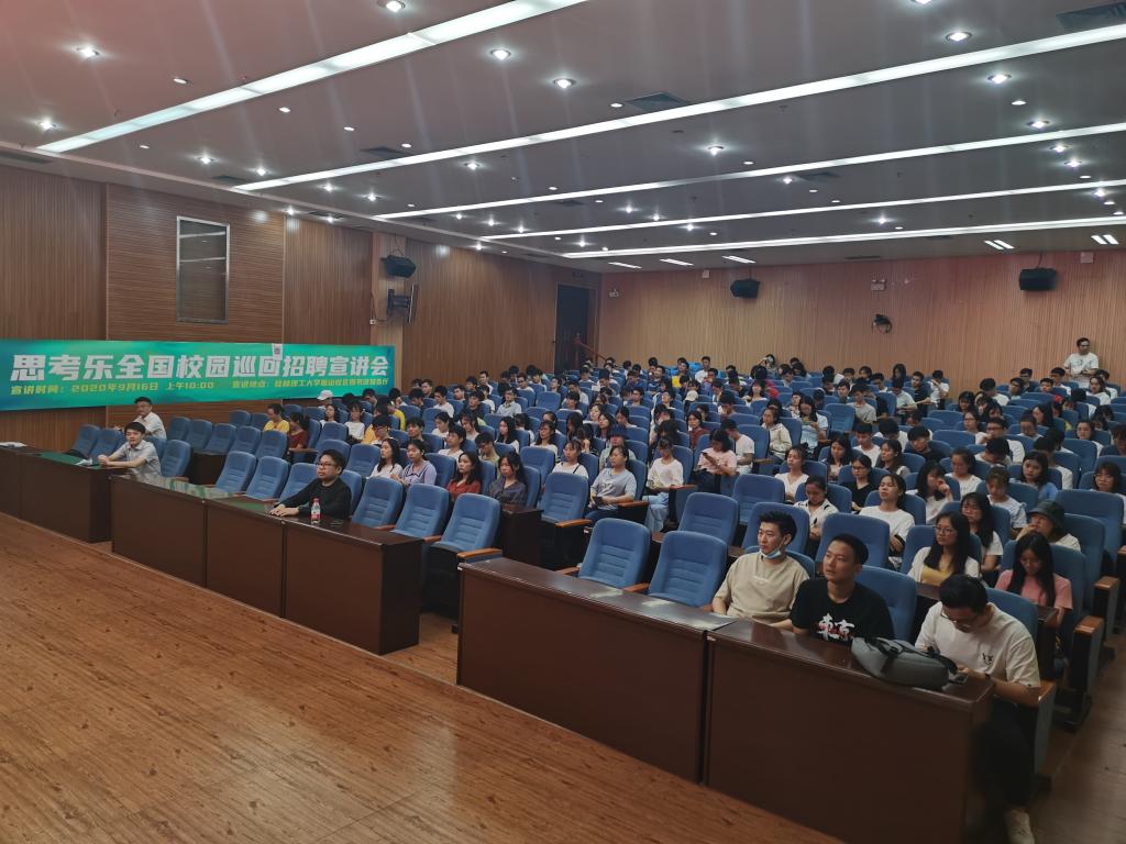 会议伊始,学院党委副书记钟立军对思考乐教育集团一行表示欢迎,肯定了作为理学院校友的思考乐员工情系母校、为母校学子带来宝贵的就业经验和就业机会的行为,也对即将踏入就业征程的2017级同学提出了希望和要求。接下来理学院2017届、2020届毕业生向同学们分享了就业经验,思考乐教育集团人力资源总监饶友系统的介绍了思考乐教育集团的企业文化、薪资待遇以及员工发展路径。