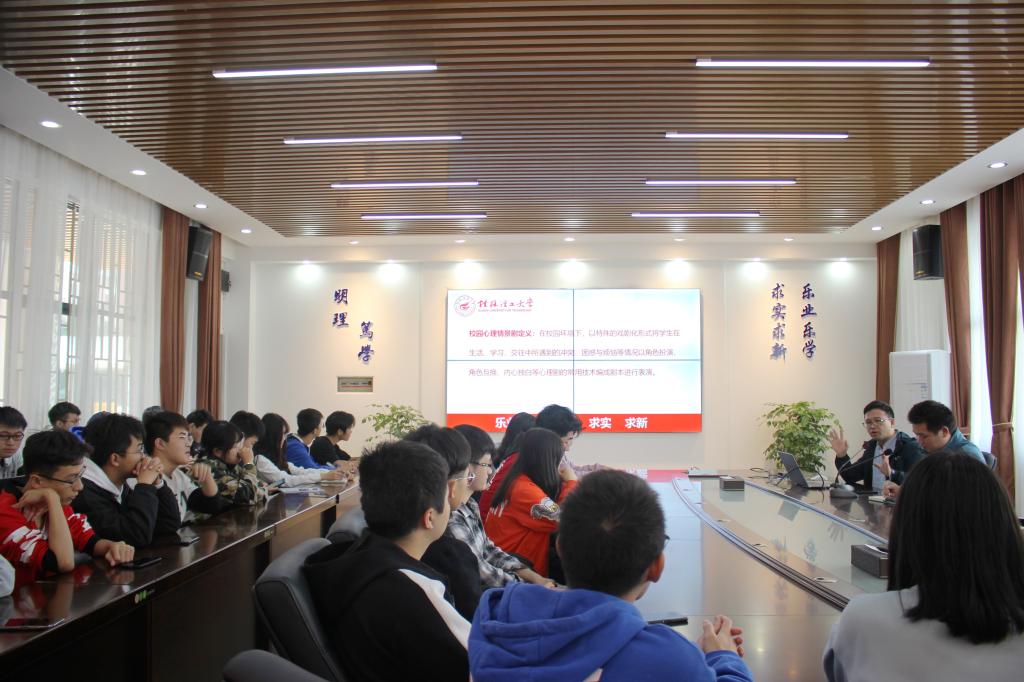 为增强同学们对心理情景剧的了解,提高我院学生对校园心理情景剧撰写和编排能力,11月13日中午,我院在雁山校区08201会议室举行校园心理情景剧专题讲座,各年级辅导员及70余学生聆听了讲座,讲座由学院党委书记欧阳胜权老师主讲。