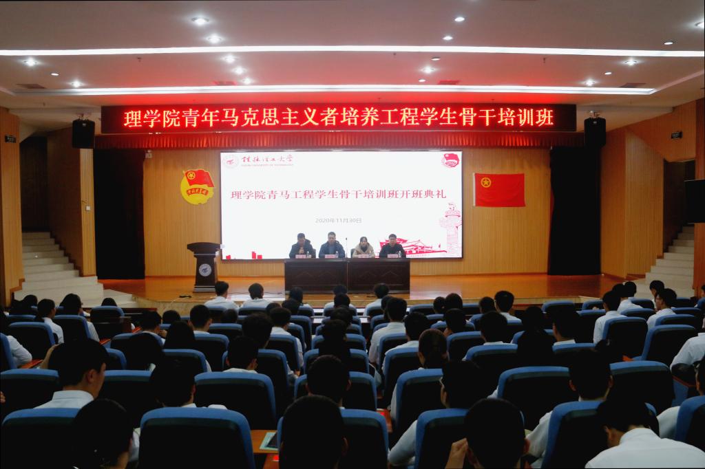 为认真贯彻落实习近平总书记关于青年工作的重要思想,聚焦实现实施“青年马克思主义者培养工程”的主要目标。11月30日晚上7点30分,我院于雁山校区图书馆报告厅举办青年马克思主义者培养工程学生骨干培训班开班典礼暨开课第一讲。出席本次活动的嘉宾有学院党委副书记钟立军老师、学院学工组组长夏晴老师、学院团委书记舒强老师、学院团委副书记刘波扬老师,参与人员为学院团委、学生会全体成员、扬帆社成员代表、新媒体易班成员代表、20级班长、团支书和学院艺术团成员。